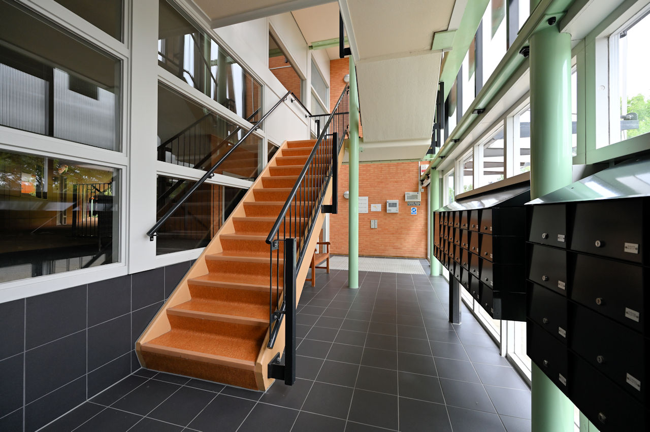 De brandbeveiliging bij de deuren naar de trappenhuizen is vernieuwd en er zijn extra zgn. Slow Woop sirenes geplaatst (brandalarmeringen)